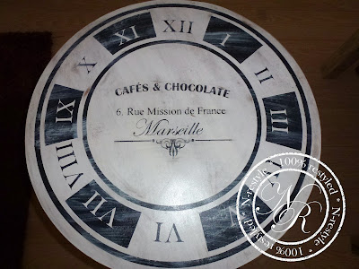 Of course I had to buy a table at the thriftstore. I had a wish to paint a clock on a table. It was the most uglliest table ever, but I like a challenge.